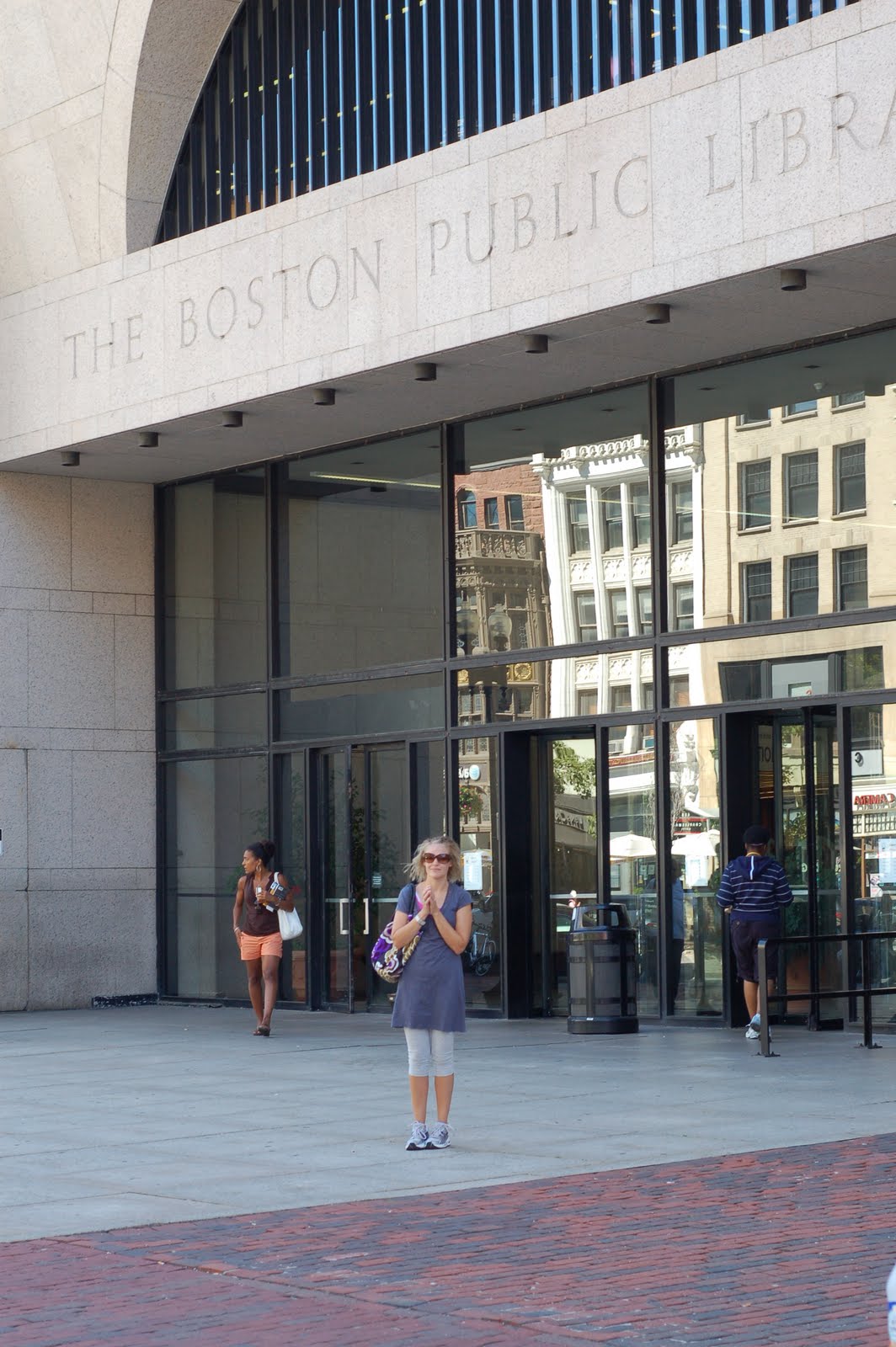 We flew in on Sunday and decided to take a walk and see what was around us. Also, we were starving since I hadn't had anything to eat since 7:30am and it was 6:30pm. I didn't really care where we ate. But the first thing we see is the firehouse. Look at this place. The picture doesn't do it justice. It is beautiful. And all the buildings are like this. They are just so pretty and cozy. We found somewhere we could eat out on the street. It reminds me of Paris, how you can just eat on the street and see the going ons with people playing music on the streets setting the ambience just perfectly. Then we took a walk around to Copley square and they have a GUCCI shop! Yeah..I was too intimidately to walk in it. That is for tomorrow. I am going to get all dolled up and then go in. I won't buy anything of course, but it never hurts to look around :) That's another thing. All the shops are seperated. No MALLS! How I take that for granted. If I want to go to Macy's and Children's place have to go to the Theatre district. If I want american eagle I have to go to the Quincy market place...totally different area. I would be supremely skinny or an internet shopper if I had to live here. But they have beautiful parks here and tons of water features at the parks, eithher pools, fountains, etc. The kids would love it. In fact, today we saw a guy walking around the fountains in just his silk underwear. Said he was working on his tan...I just think he was missing a few marbles...but whatever makes him happy. I just count myself lucky he had his boxers on.